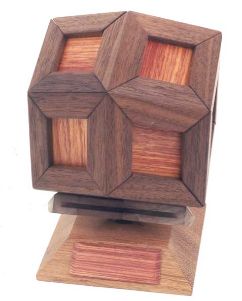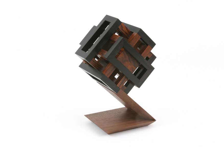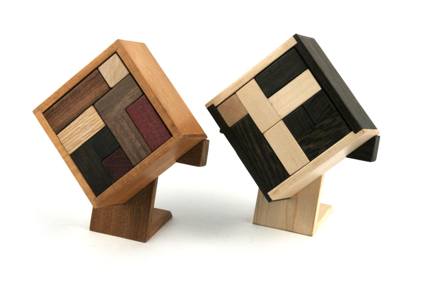 Woods: Ebony, maple, canarywood (purpleheart stand) / yellowheart, Peruvian walnut, Santos mahogany (lyptus stand)