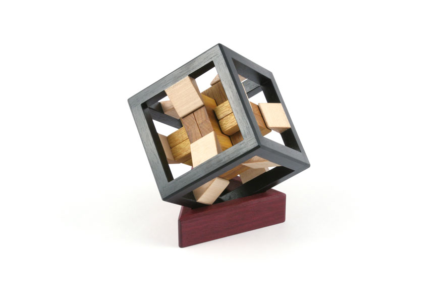 Woods: Ebony, maple, canarywood (purpleheart stand) / yellowheart, Peruvian walnut, Santos mahogany (lyptus stand)